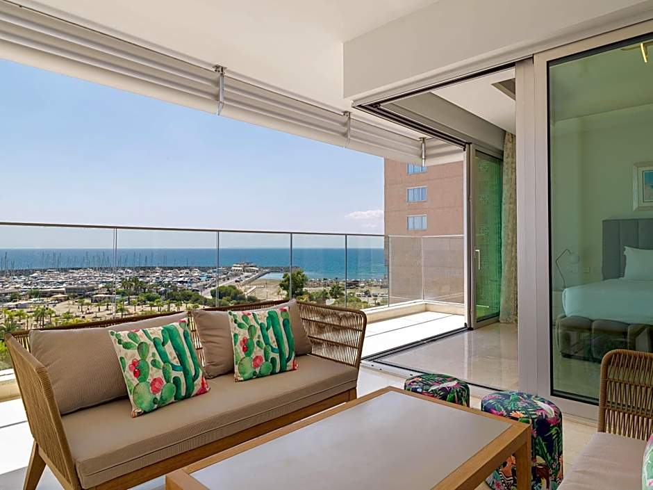 Executive room with large balcony featuring 2 sun-loungers. Great views overlooking executive-wing swimming pool, landscaped gardens, the marina and the Mediterranean Sea. Bright and modernly decorated, it features a marble bathroom with free toiletries.